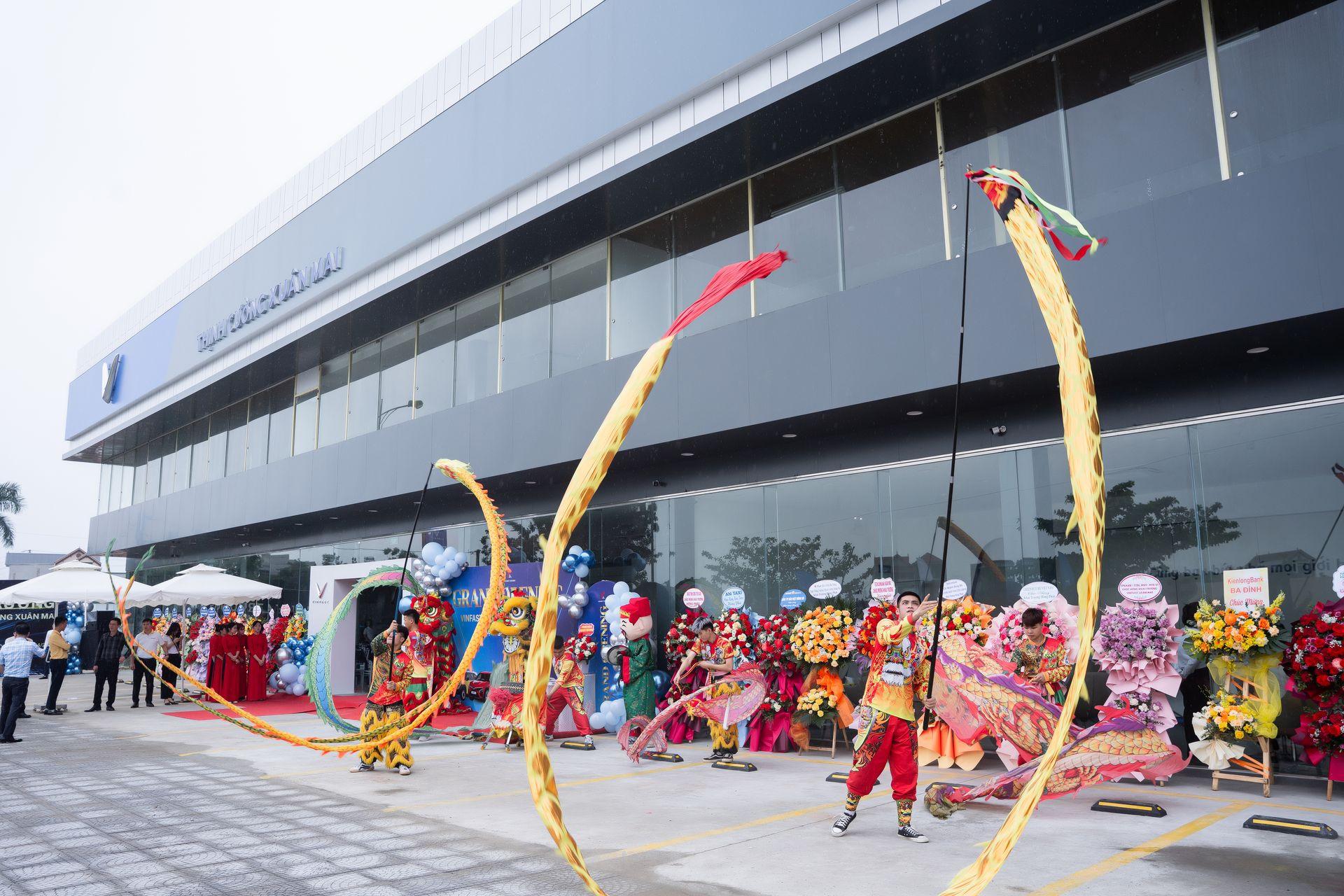 Khoảnh khắc long trọng nhất chính là nghi thức cắt băng khai trương, với sự tham gia của Ban Lãnh đạo Thịnh Cường và đại diện từ VinFast. Tiếng trống hội vang lên rộn ràng, pháo điện nổ rực rỡ đã khép lại phần nghi lễ bằng một năng lượng mạnh mẽ, đầy hứa hẹn.